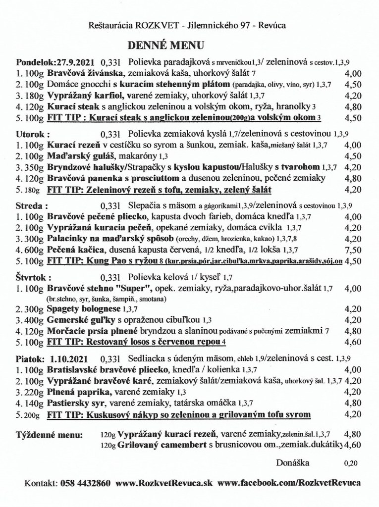 Jedálny lístok od 27.9. do 1.10.2021 Publikoval(a):juhasovarenata24 septembra, 202124 septembra, 2021Posted inUncategorized Zdieľaj tento článok: Click to share on X(Otvorí sa v novom okne) X Kliknite pre zdieľanie na Facebooku(Otvorí sa v novom okne) Facebook Páči sa mi Nahráva sa... Súvisiace