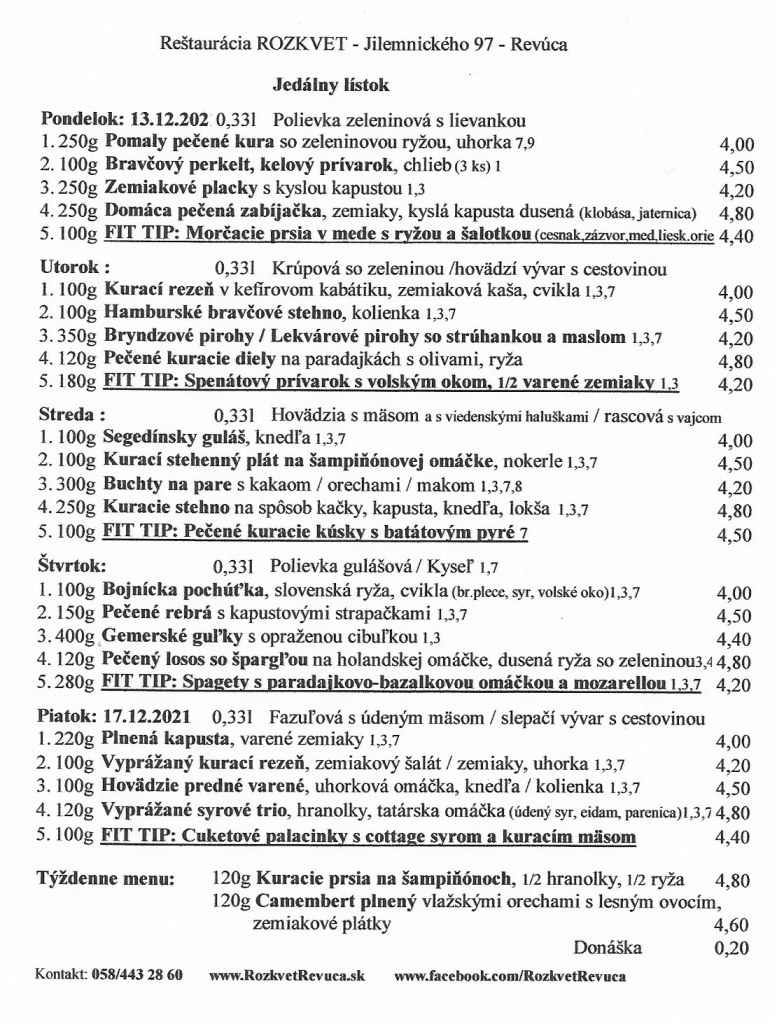 Jedálny lístok od 13.12. do 17.12.2021 Publikoval(a):juhasovarenata11 decembra, 2021Posted inUncategorized Zdieľaj tento článok: Click to share on X(Otvorí sa v novom okne) X Kliknite pre zdieľanie na Facebooku(Otvorí sa v novom okne) Facebook Páči sa mi Nahráva sa... Súvisiace