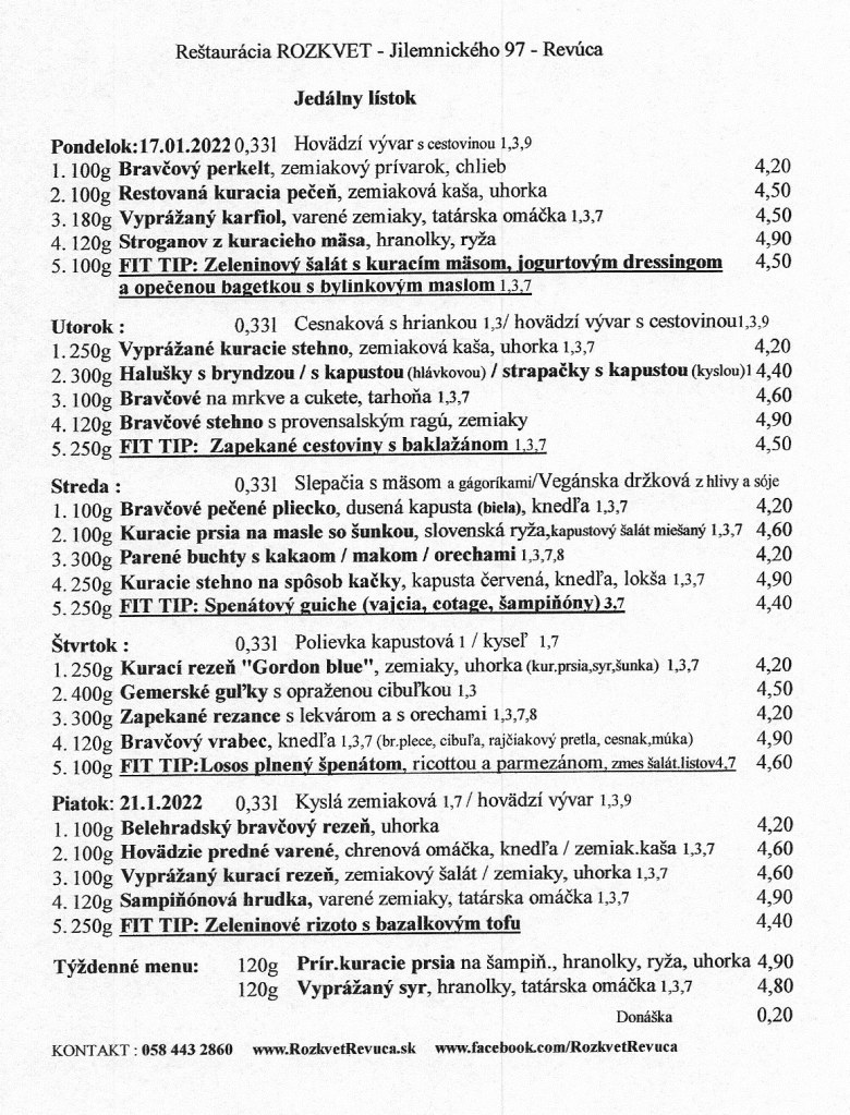 Jedálny lístok od 17.1. do 21.1.2022 Publikoval(a):juhasovarenata14 januára, 2022Posted inUncategorized Zdieľaj tento článok: Click to share on X(Otvorí sa v novom okne) X Kliknite pre zdieľanie na Facebooku(Otvorí sa v novom okne) Facebook Páči sa mi Nahráva sa... Súvisiace