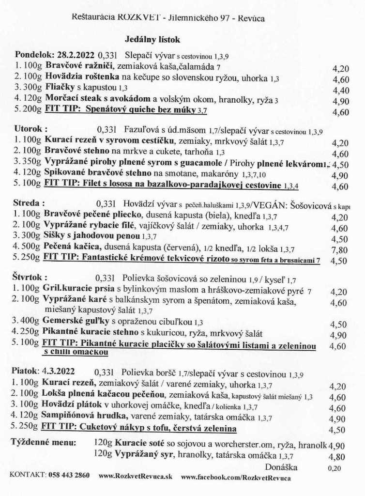 Jedálny lístok od 28.2. do 4.3.2022 Publikoval(a):juhasovarenata27 februára, 202227 februára, 2022Posted inUncategorized Zdieľaj tento článok: Share on X(Otvorí sa v novom okne) X Zdielať na Facebooku(Otvorí sa v novom okne) Facebook Páči sa mi Nahráva sa... Súvisiace