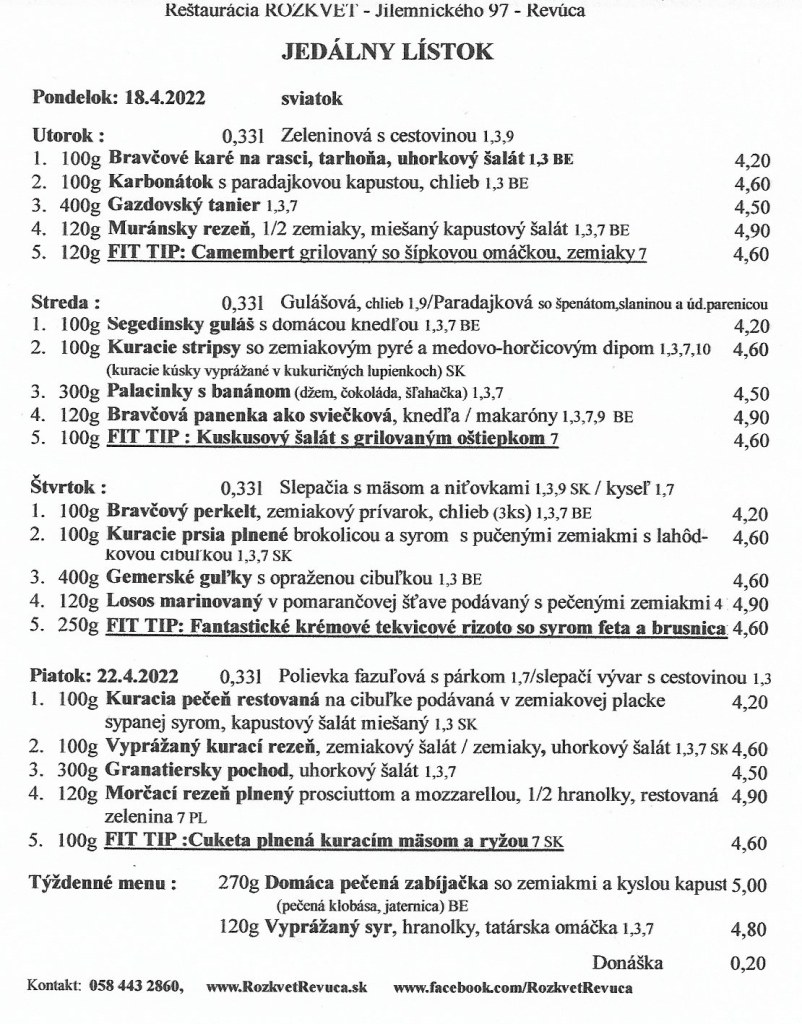 Jedálny lístok od 18.4. do 22.4.2022 Publikoval(a):juhasovarenata14 apríla, 2022Posted inUncategorized Zdieľaj tento článok: Click to share on X(Otvorí sa v novom okne) X Kliknite pre zdieľanie na Facebooku(Otvorí sa v novom okne) Facebook Páči sa mi Nahráva sa... Súvisiace