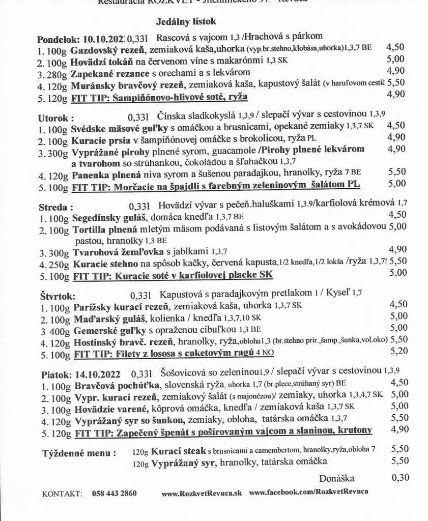 Jedálny lístok od 10.10. do 14.10.2022 Publikoval(a):juhasovarenata7 októbra, 2022Posted inUncategorized Zdieľaj tento článok: Click to share on X(Otvorí sa v novom okne) X Kliknite pre zdieľanie na Facebooku(Otvorí sa v novom okne) Facebook Páči sa mi Nahráva sa... Súvisiace
