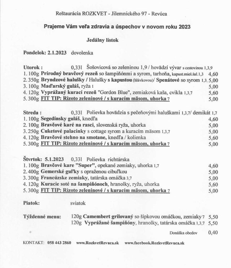 Jedálny lístok od 2.1. do 6.1.2023 Publikoval(a):juhasovarenata29 decembra, 2022Posted inUncategorized Zdieľaj tento článok: Click to share on X(Otvorí sa v novom okne) X Kliknite pre zdieľanie na Facebooku(Otvorí sa v novom okne) Facebook Páči sa mi Nahráva sa... Súvisiace