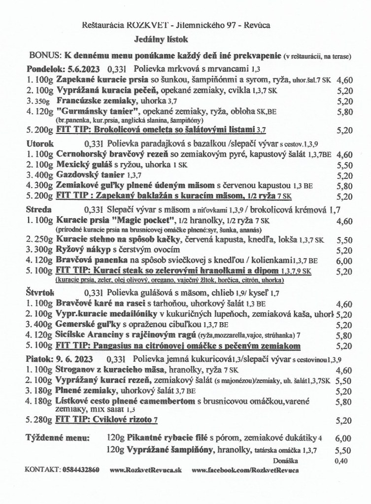 Jedálny lístok od 5.6. do 9.6.2023 Publikoval(a):juhasovarenata2 júna, 20232 júna, 2023Posted inUncategorized Zdieľaj tento článok: Click to share on X(Otvorí sa v novom okne) X Kliknite pre zdieľanie na Facebooku(Otvorí sa v novom okne) Facebook Páči sa mi Nahráva sa... Súvisiace