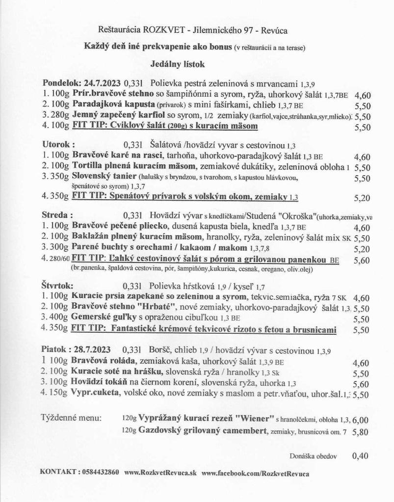Jedálny lístok od 24.7. do 28.7.2023 Publikoval(a):juhasovarenata21 júla, 2023Posted inUncategorized Zdieľaj tento článok: Click to share on X(Otvorí sa v novom okne) X Kliknite pre zdieľanie na Facebooku(Otvorí sa v novom okne) Facebook Páči sa mi Nahráva sa... Súvisiace
