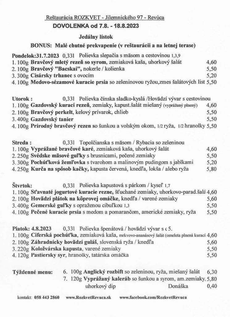 Jedálny lístok od 31.7. do 4.8.2023 Publikoval(a):juhasovarenata28 júla, 2023Posted inUncategorized Zdieľaj tento článok: Click to share on X(Otvorí sa v novom okne) X Kliknite pre zdieľanie na Facebooku(Otvorí sa v novom okne) Facebook Páči sa mi Nahráva sa... Súvisiace