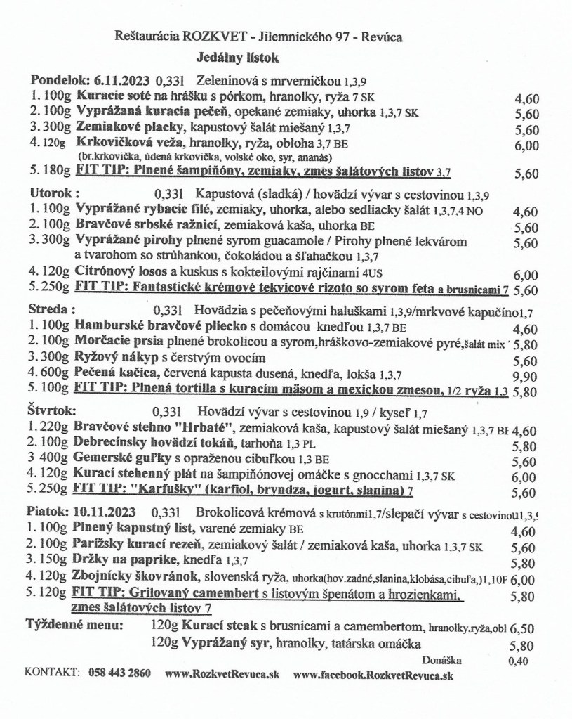 Jedálny lístok od 6.11. do 10.11.2023 Publikoval(a):juhasovarenata2 novembra, 20232 novembra, 2023Posted inUncategorized Zdieľaj tento článok: Click to share on X(Otvorí sa v novom okne) X Kliknite pre zdieľanie na Facebooku(Otvorí sa v novom okne) Facebook Páči sa mi Nahráva sa... Súvisiace