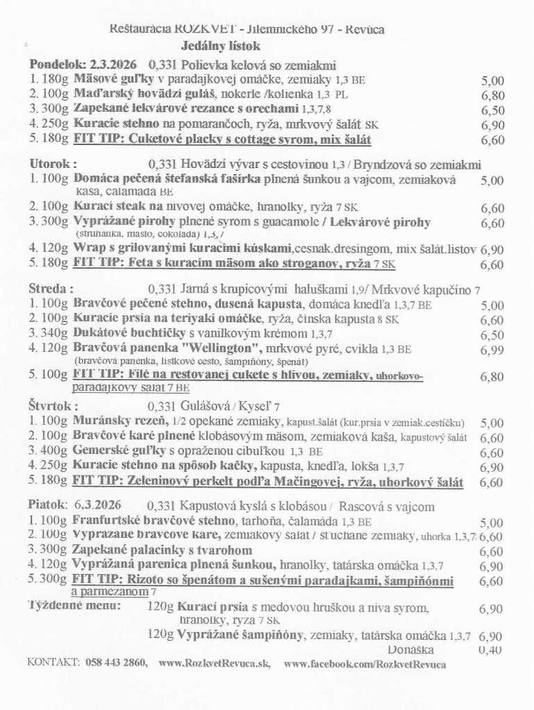 Jedálny lístok od 02.03. do 06.03.2026 Publikoval(a):juhasovarenata27 februára, 2026Posted inUncategorized Zdieľaj tento článok: Share on X(Otvorí sa v novom okne) X Zdielať na Facebooku(Otvorí sa v novom okne) Facebook Páči sa mi Nahráva sa... Súvisiace