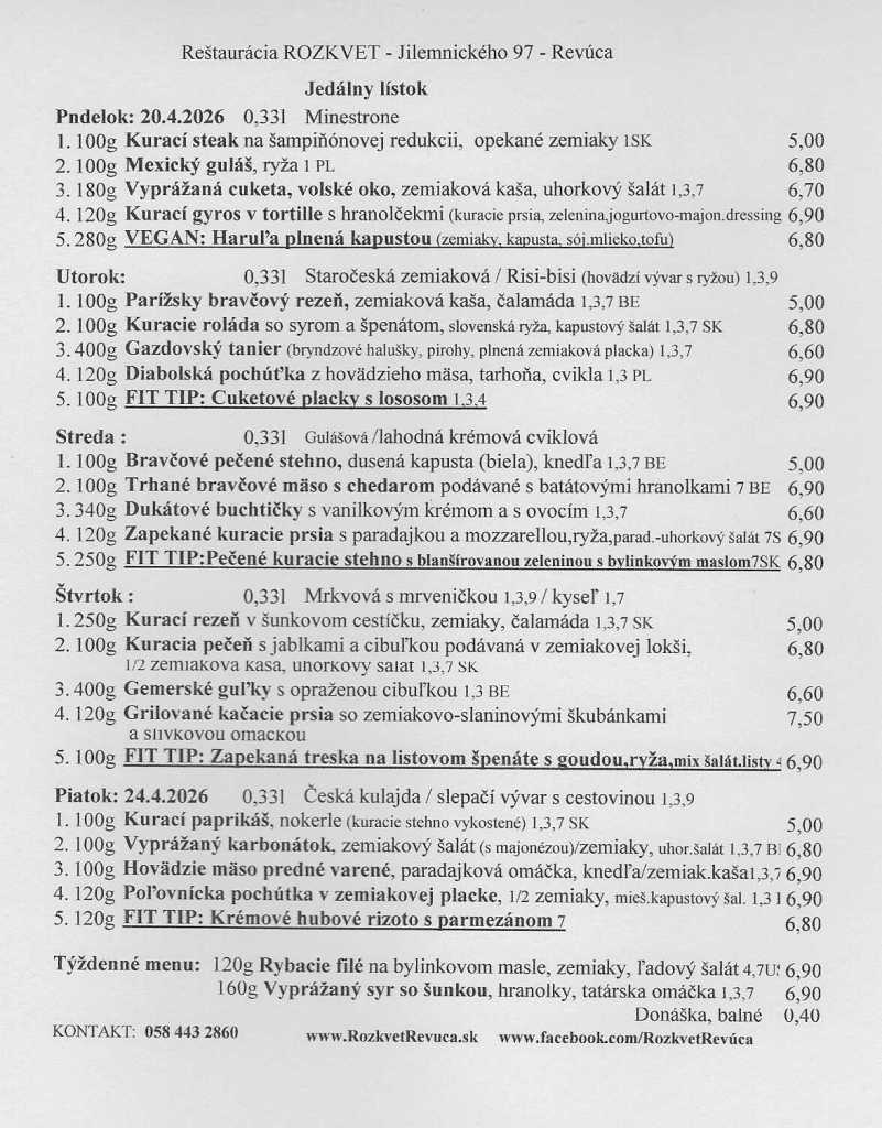 Jedálny lístok od 20.4. do 24.4.2026 Publikoval(a):juhasovarenata17 apríla, 2026Posted inUncategorized Zdieľaj tento článok: Share on X(Otvorí sa v novom okne) X Zdielať na Facebooku(Otvorí sa v novom okne) Facebook Páči sa mi Nahráva sa... Súvisiace