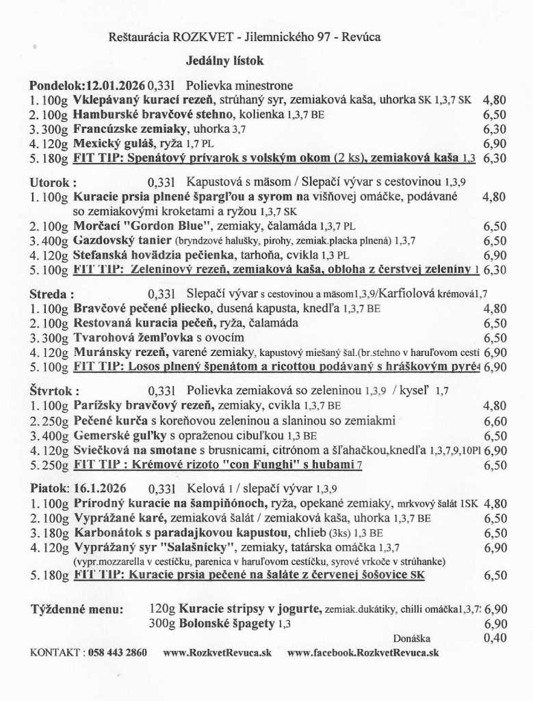 Jedálny lístok od 12.01. do 16.01.2026