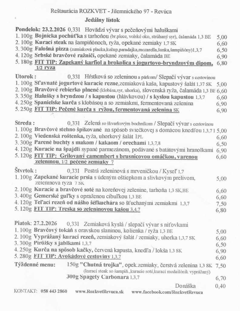 Jedálny lístok od 23.02. do 27.02.2026