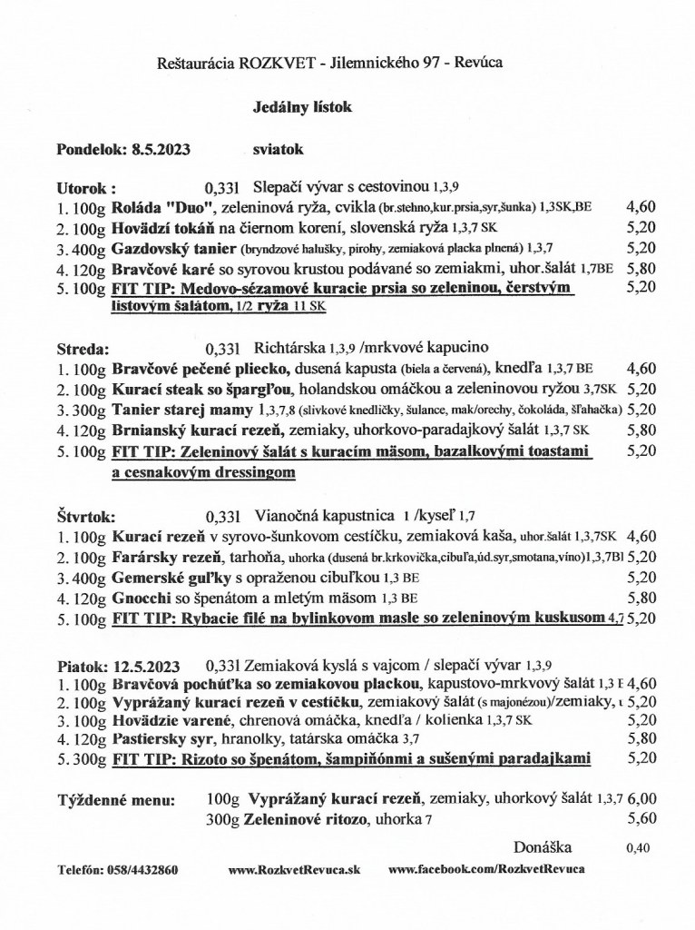 Jedálny lístok od 2.5. do 5.5.2023