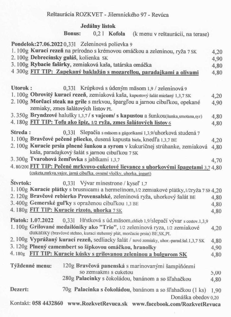 Jedálny lístok od 27.6. do 1.7.2022
