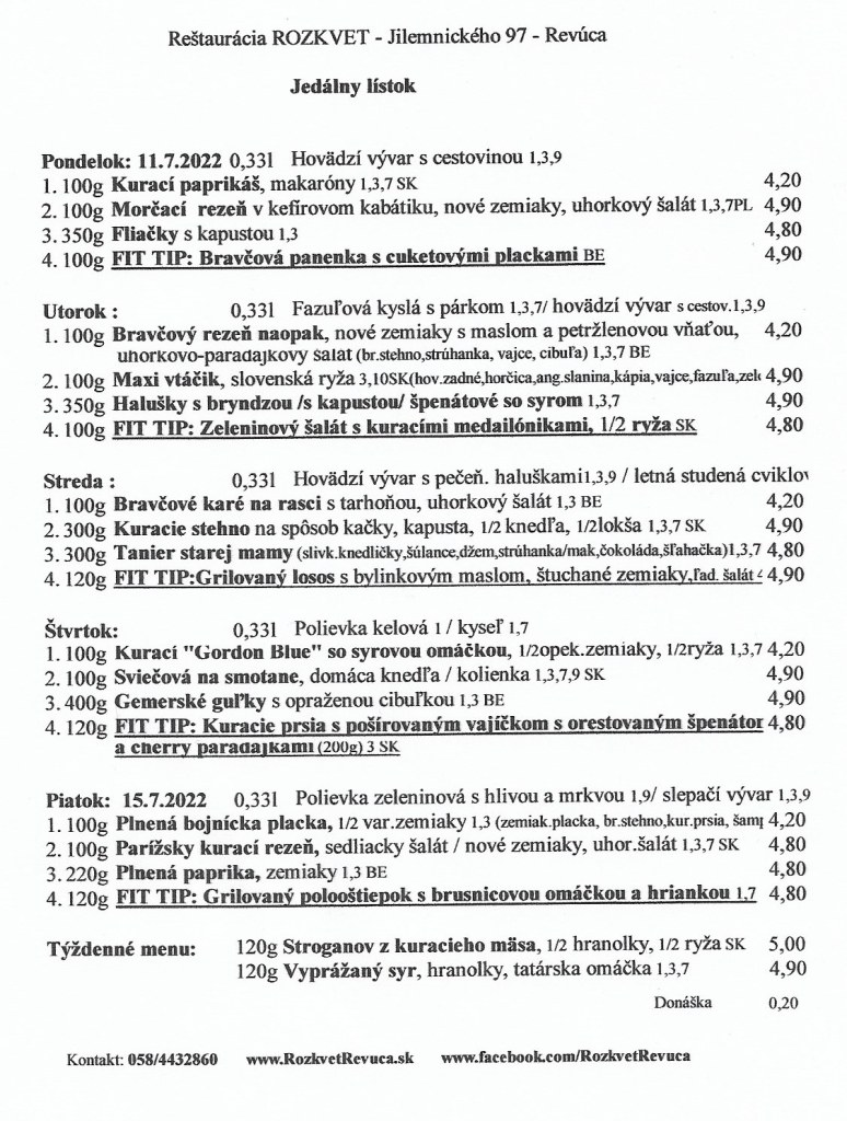 Jedálny lístok od 11.7. do 15.7.2022