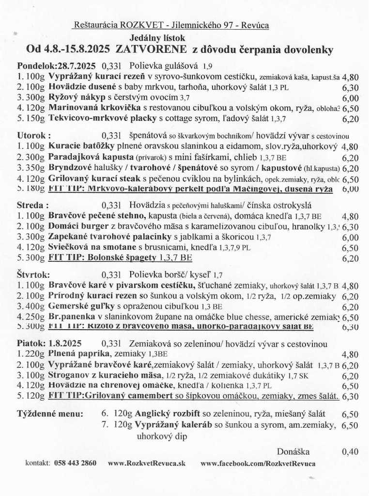 Radi Vás opäť privítame od 18.8.2025.