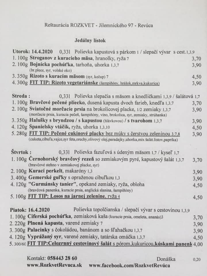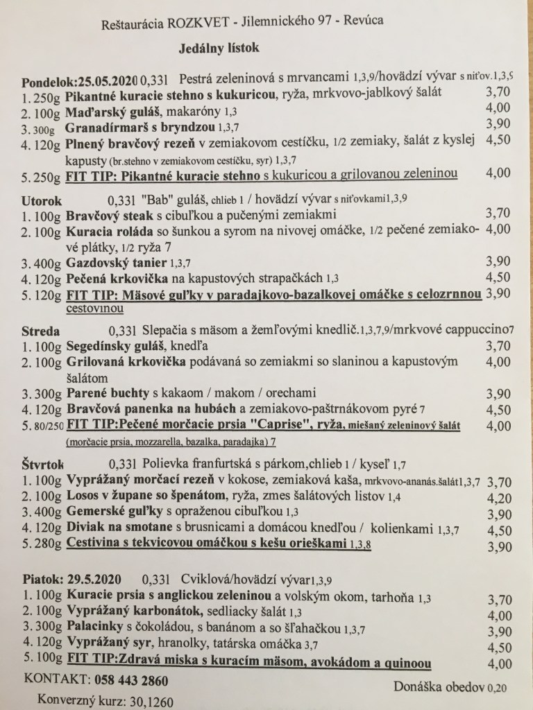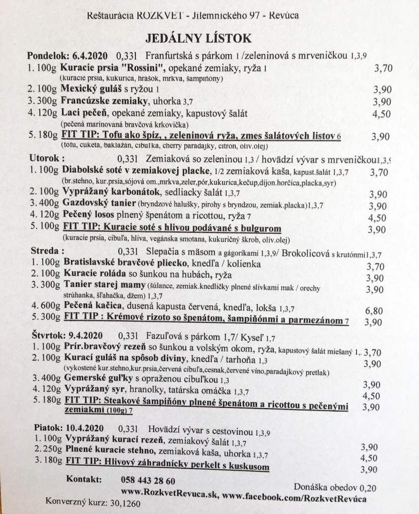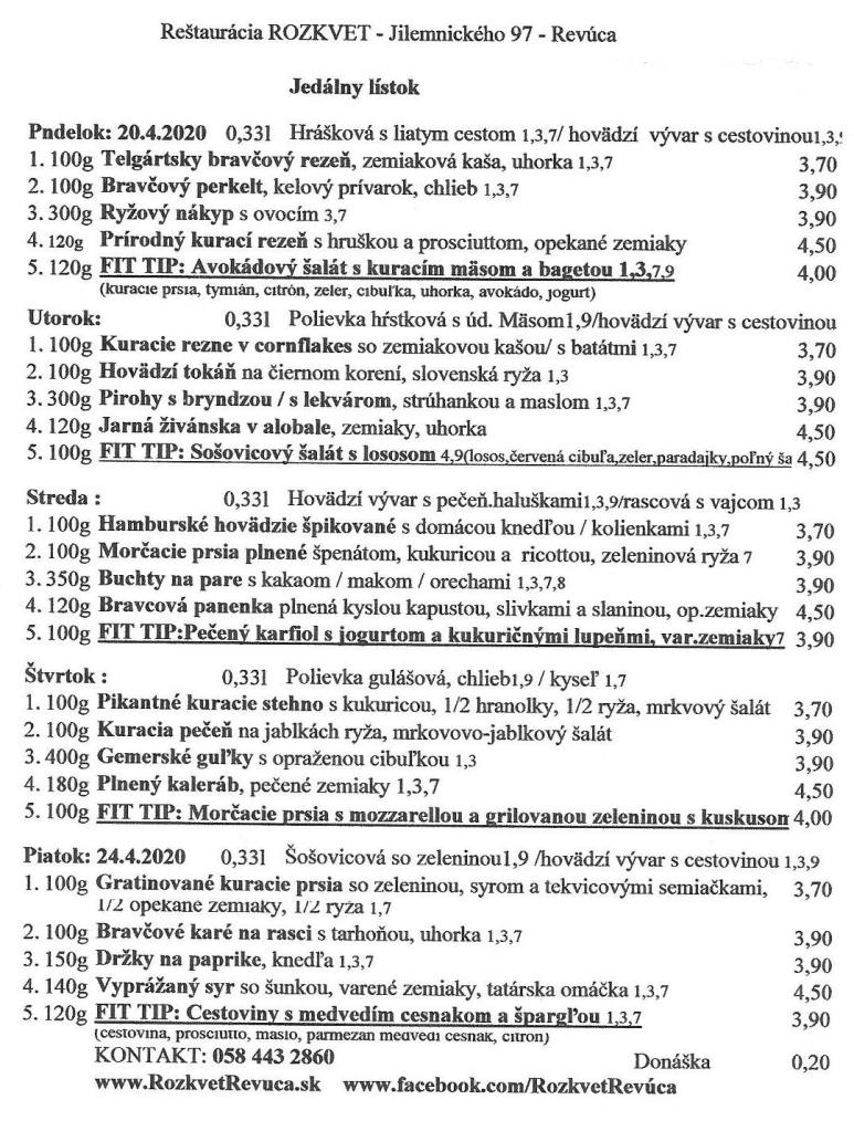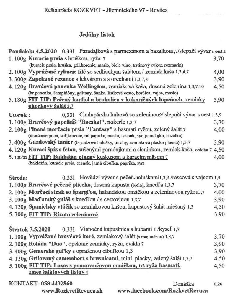 Jedálny lístok od 04.5. do 07.5.2020