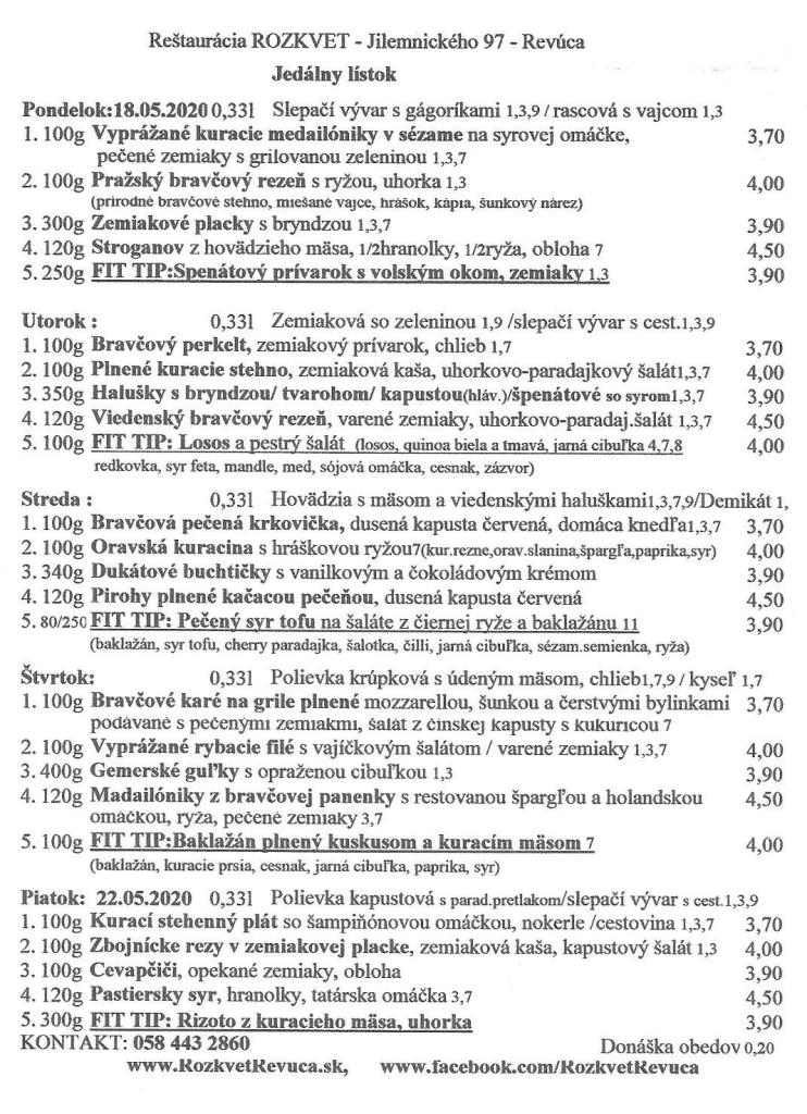 Jedálny lístok od 18.5. do 22.5.2020