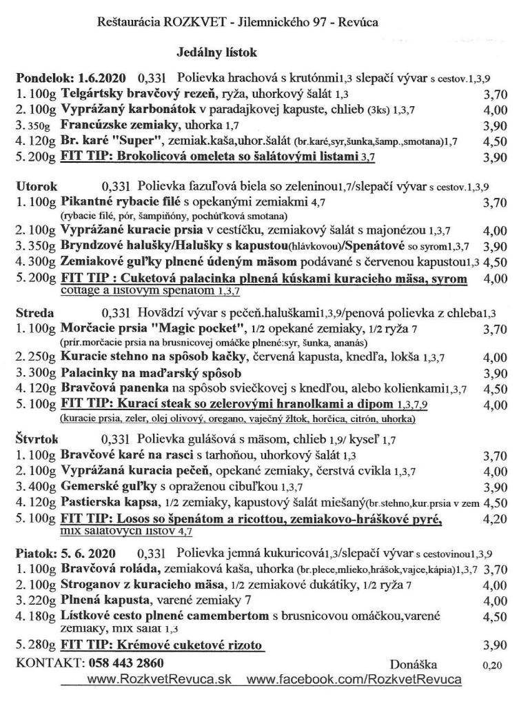 Jedálny lístok od 01.6. do 05.6.2020