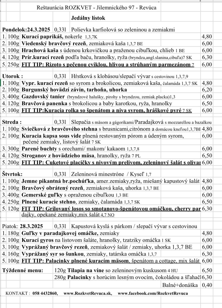 Jedálny lístok od 24.03. do 28.03.2025