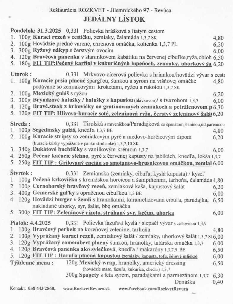 Jedálny lístok od 31.03. do 04.04.2025