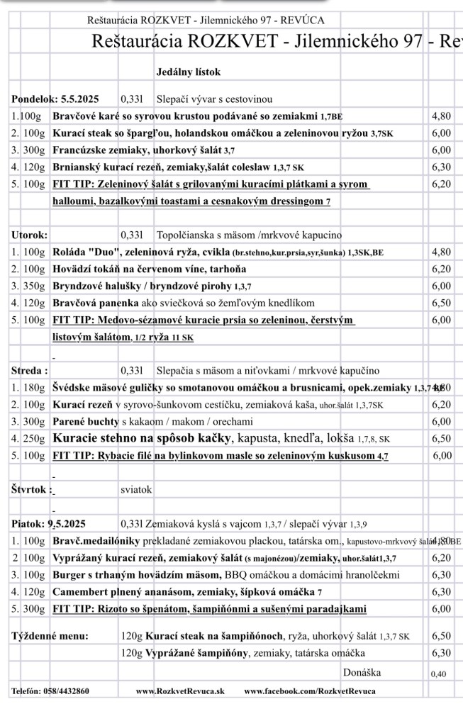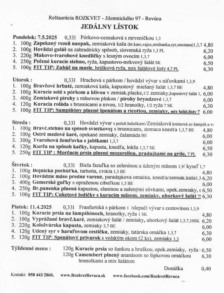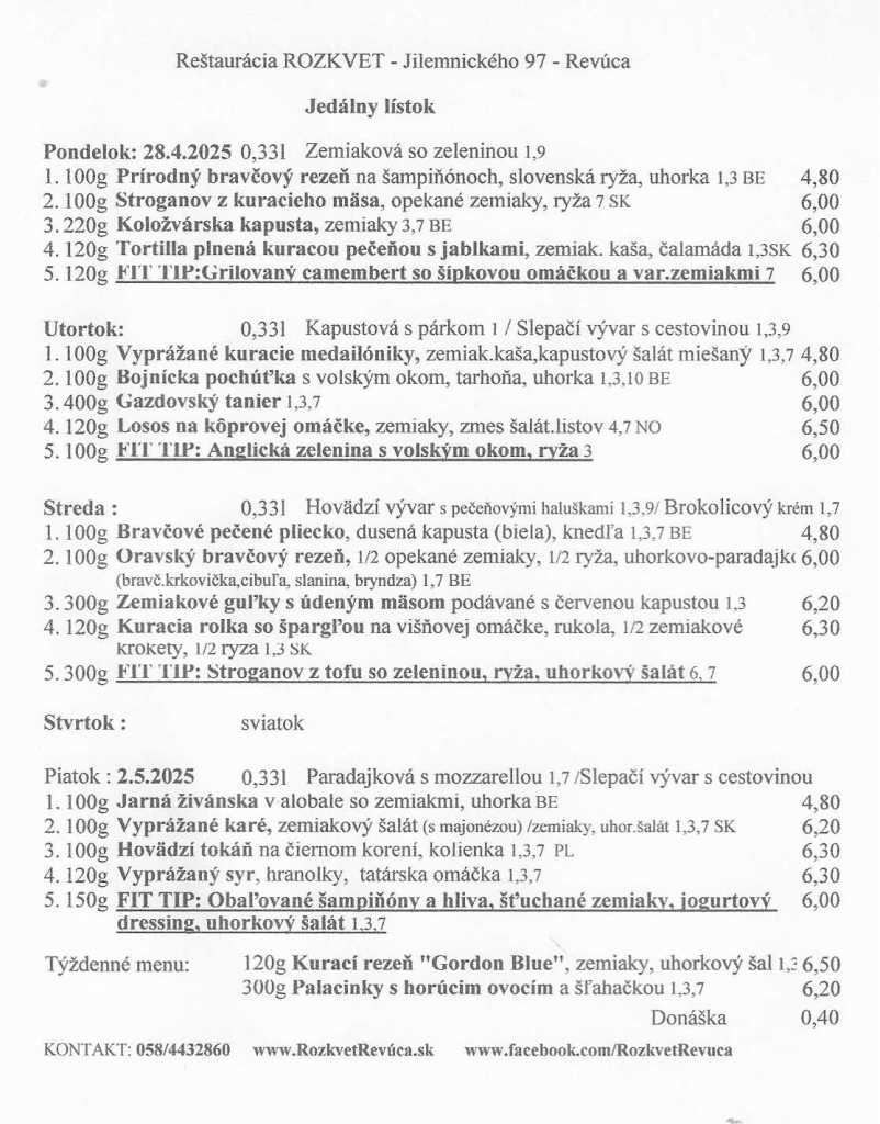 Jedálny lístok od 28.04. do 02.05.2025