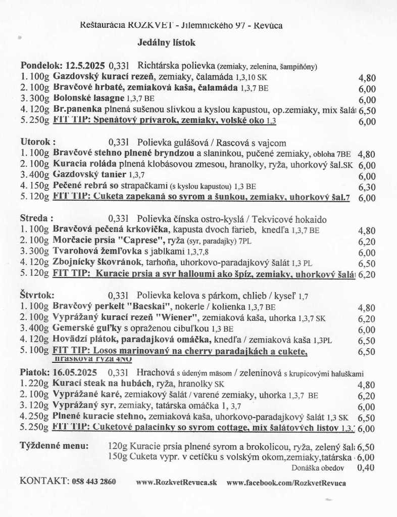 Jedálny lístok od 12.05. do 16.05.2025