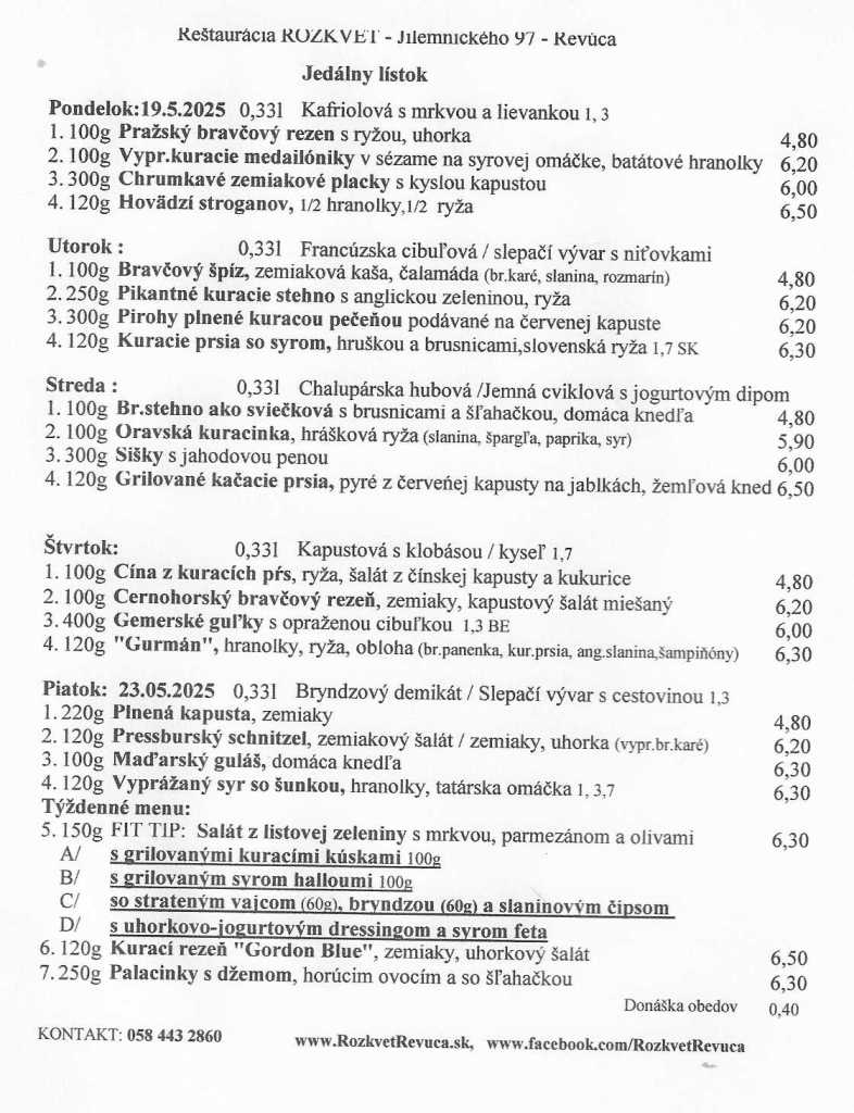 Jedálny lístok od 19.05. do 23.05.2025